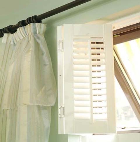 Most wooden shutters have adjustable louvres for light control, providing shade in summer and added warmth in winter. Solid panel options are also available offering combinations of wood, metal, acrylic and other materials. Wooden panels can be custom finished in natural wood stains or a variety of eggshell, paint colours.
